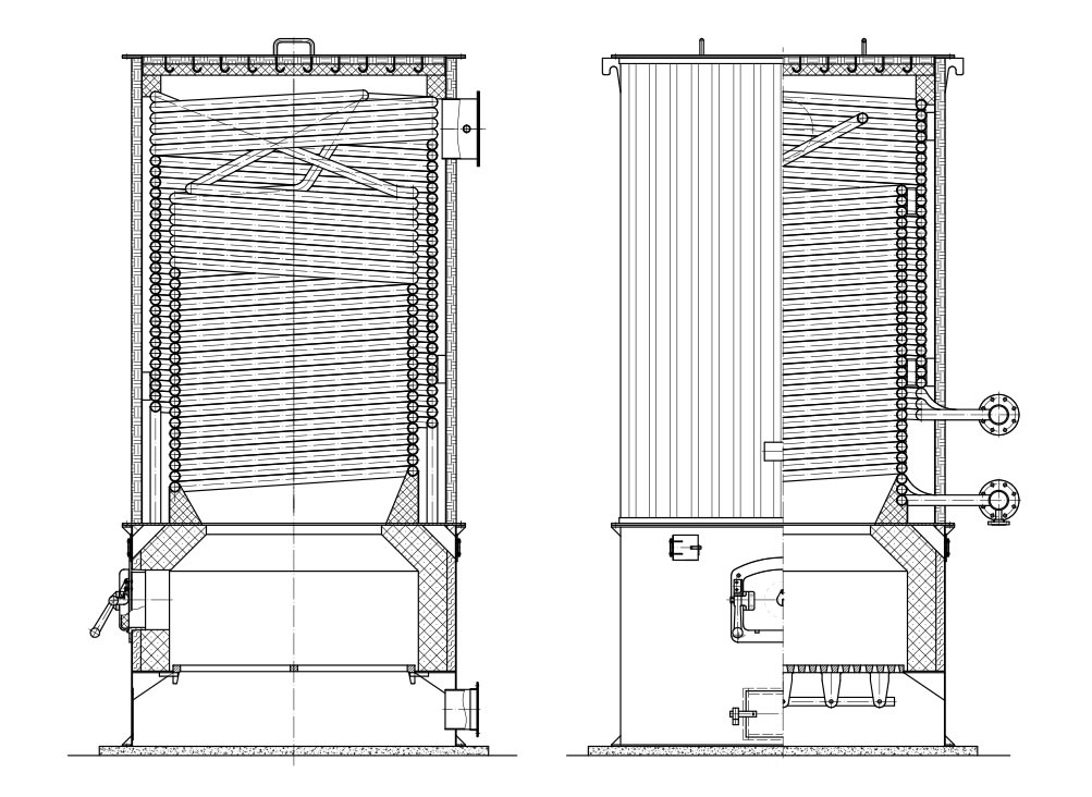 爐體(tǐ)內(nèi)、外螺旋盤管采用多頭、小管徑鋼管製(zhì)成,盤管的熱膨脹性能好、應力低、安*。